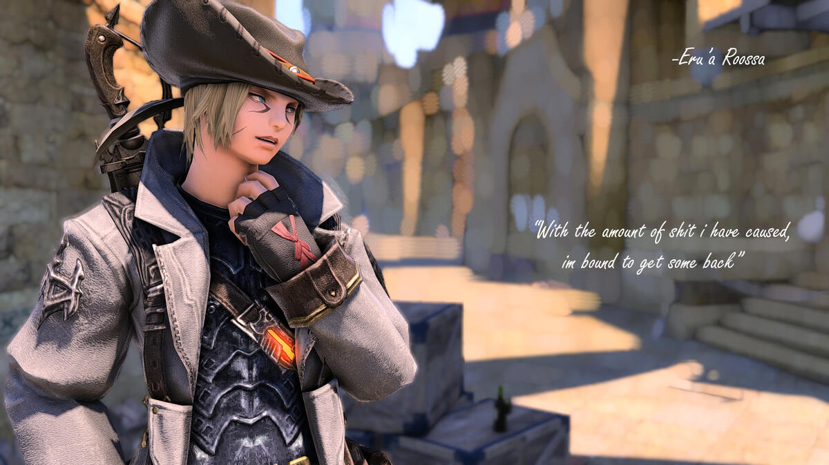 E'lithas is a rather curious charecter that Eru has encountared on his travels looking for work. Eru can tell the male miqo knows magic and he seems very intelligent. Much so more then himself but he also gets himself into a lot of trouble a lot of the time. So Eru considers E'lithas to be an intelligent fool.He can also tell he is mischievous especially with him not telling Matteo what Eru is pressuming is E'lithas lover about a certain incident Eru Helped E'lithas with. but he also has a lot of charisma around him and Eru can certainly see why so many take work from him. himself included even if his goals seem selfish in the end.